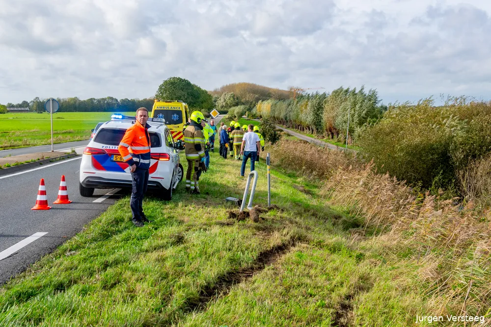 Het ongeval gebeurde omstreeks 13.00u. De brandweer, politie en ambulance kwamen met meerdere voertuigen ter plekke. Daar bleek dat een auto onderaan de dijk lag, de automobilist was al met behulp van omstanders uit de auto geholpen.