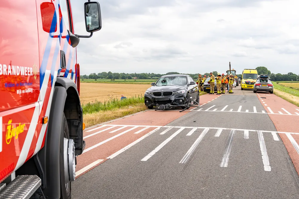 De twee personen op de fiets betrof een ouder echtpaar. De man belandde onder aan de dijk. De vrouw lag nog op de weg. Beide zijn ernstig gewond naar het ziekenhuis gebracht.