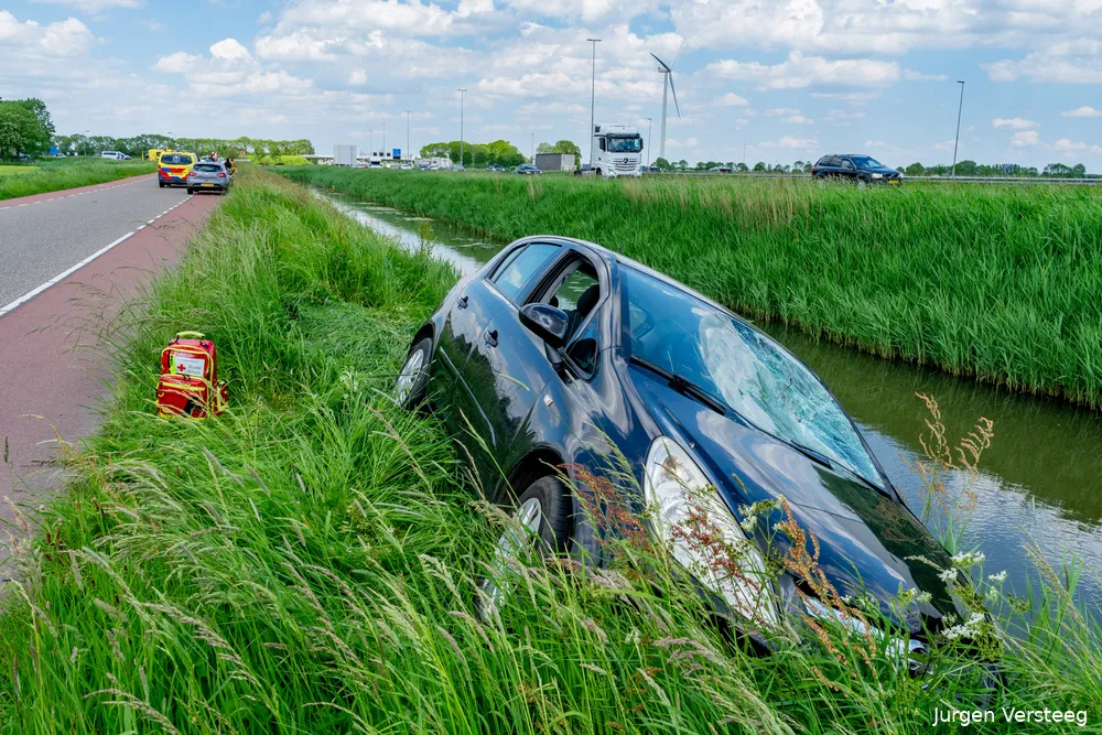 De automobilist kon de auto pas circa 100 meter verderop tot stilstand brengen, de auto belandde bijna in de naastgelegen sloot.