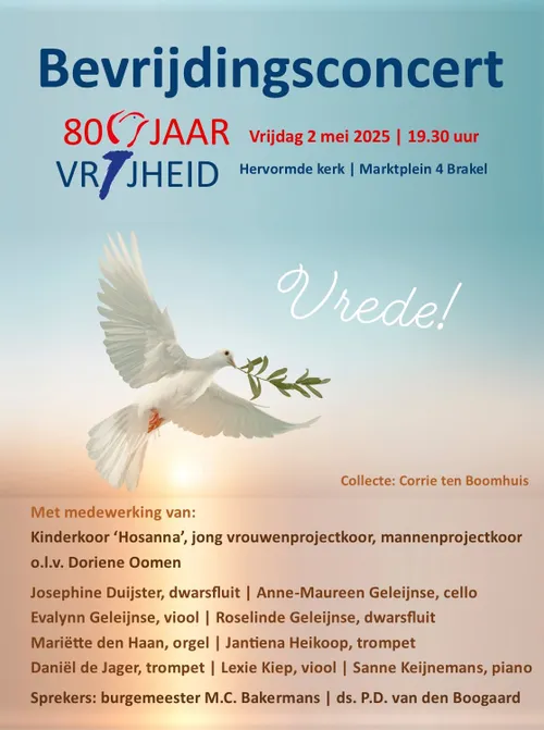 Brakel – Ter gelegenheid van 80 jaar bevrijding organiseert kinderkoor Hosanna op vrijdagavond 2 mei een bevrijdingsconcert in de Hervormde Kerk te Brakel. Het concert staat in het teken van het thema ‘vrede’.